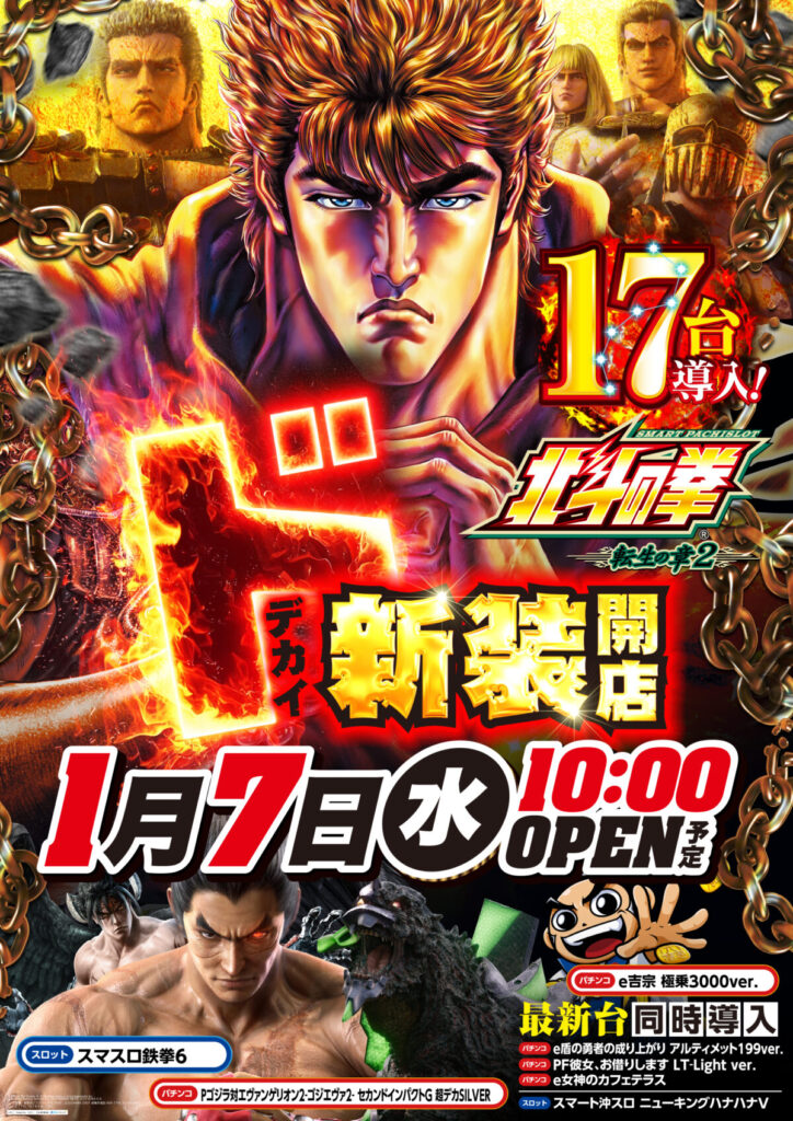 【一之江】1月6日ド新装開店・北斗転生2導入予定