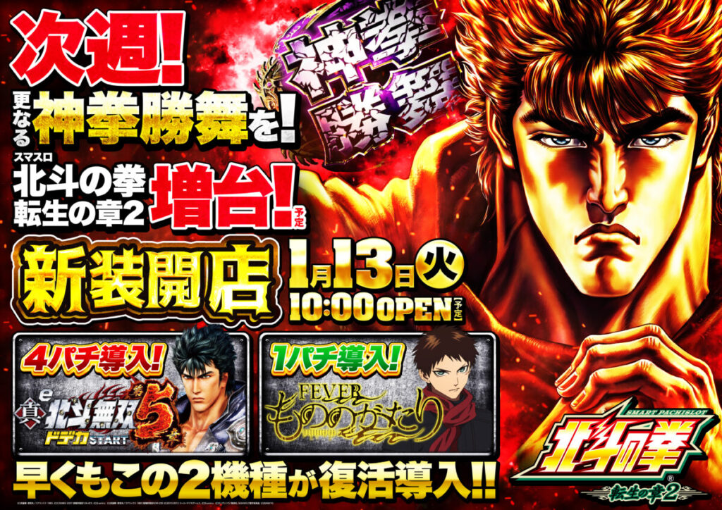 【一之江】1月6日ド新装開店・北斗転生2導入予定